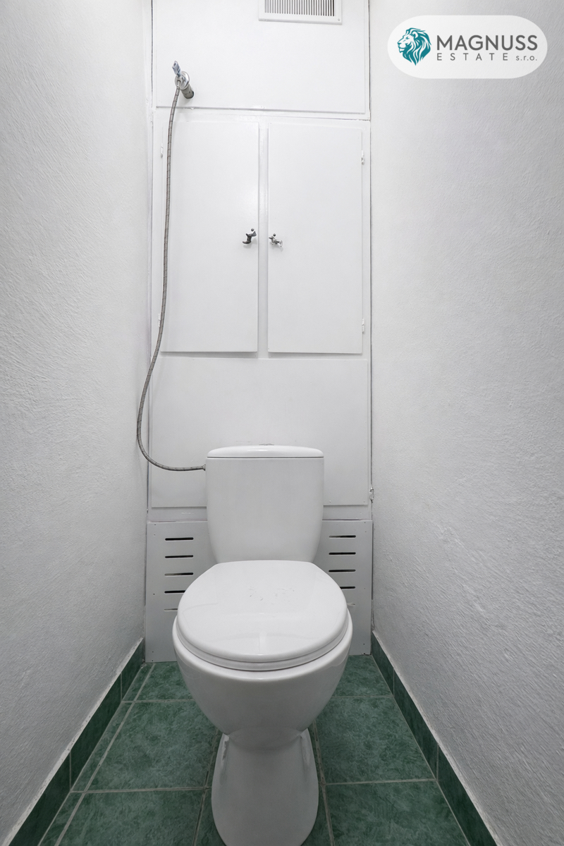 Kuchyně je samostatná a nabízí dostatek prostoru pro realizaci dle vlastních představ. Dále je k dispozici koupelna s vanou, samostatné WC a praktické úložné prostory.