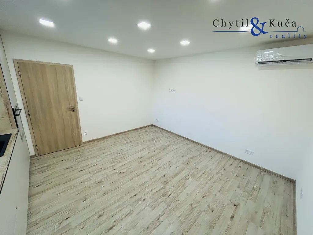 Byt je dispozičně řešený jako 2+kk (chodba, koupelna s wc a sprchovým koutem, 2 místnosti vč. kuchyňské linky) a je nový po kompletní rekonstrukci, stejně jako celý dům.