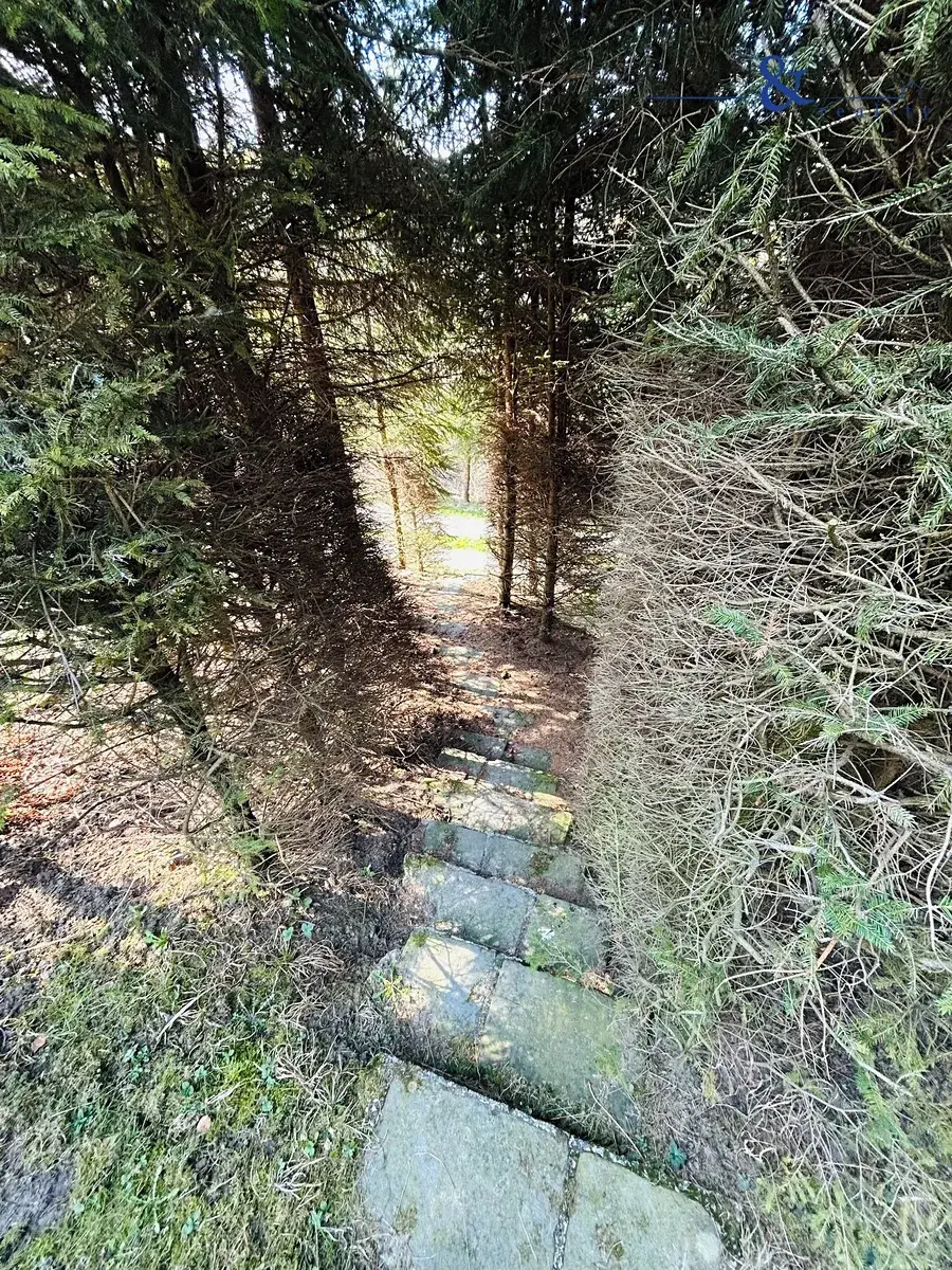 Chata stojí na vlastním, na z části vyvýšiném, ale rovinatém pozemku a z části mírně svažitém pozemku.