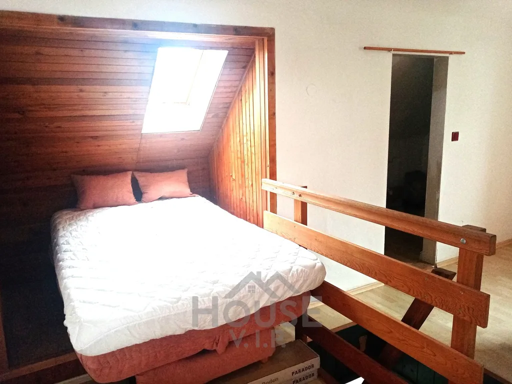 druhá podkrovní ložnice v patře (přístup po dřevěném schodišti z obývacího pokoje)