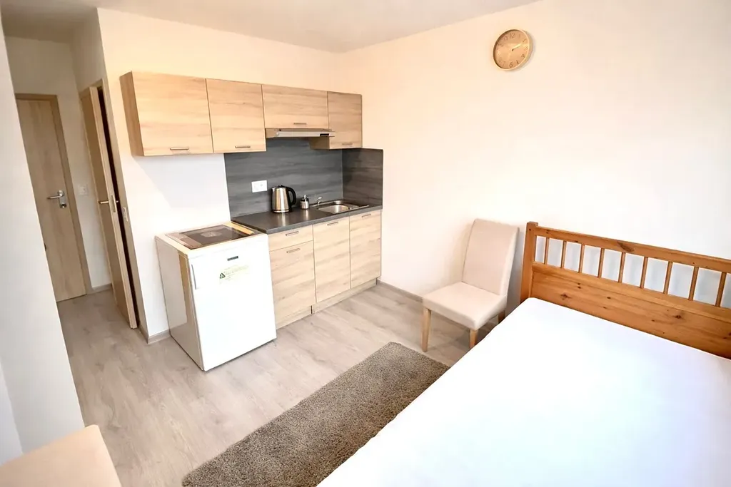 Nemovitost je rozdělena na 5 samostatných, plně vybavených bytových jednotek typu 1+kk. Každá jednotka disponuje vlastní kuchyní, koupelnou s WC a samostatnými podružnými měřiči energií (elektřina, voda), což zajišťuje efektivní správu i transparentní vyúčtování.