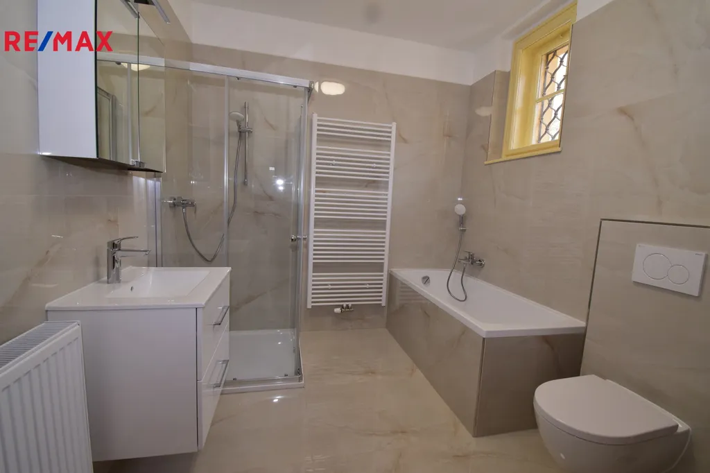Byt prošel kompletní rekonstrukcí a nabízí komfortní bydlení s důrazem na prostor i kvalitu. Dominantou je zcela nová koupelna vybavená jak sprchovým koutem, tak i vanou. Součástí bytu je také praktická šatna a balkon. Byt je vybaven stylovým nábytkem, nová kuchyňská linka včetně spotřebičů