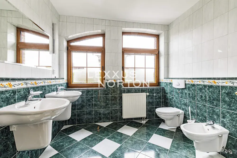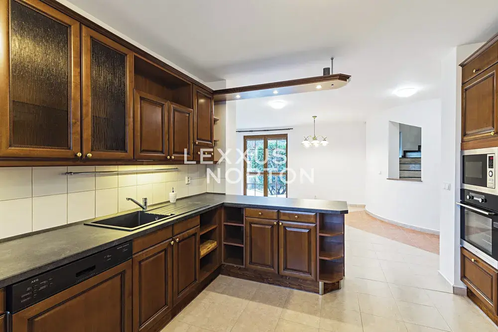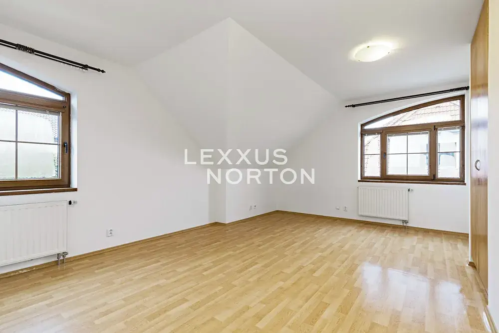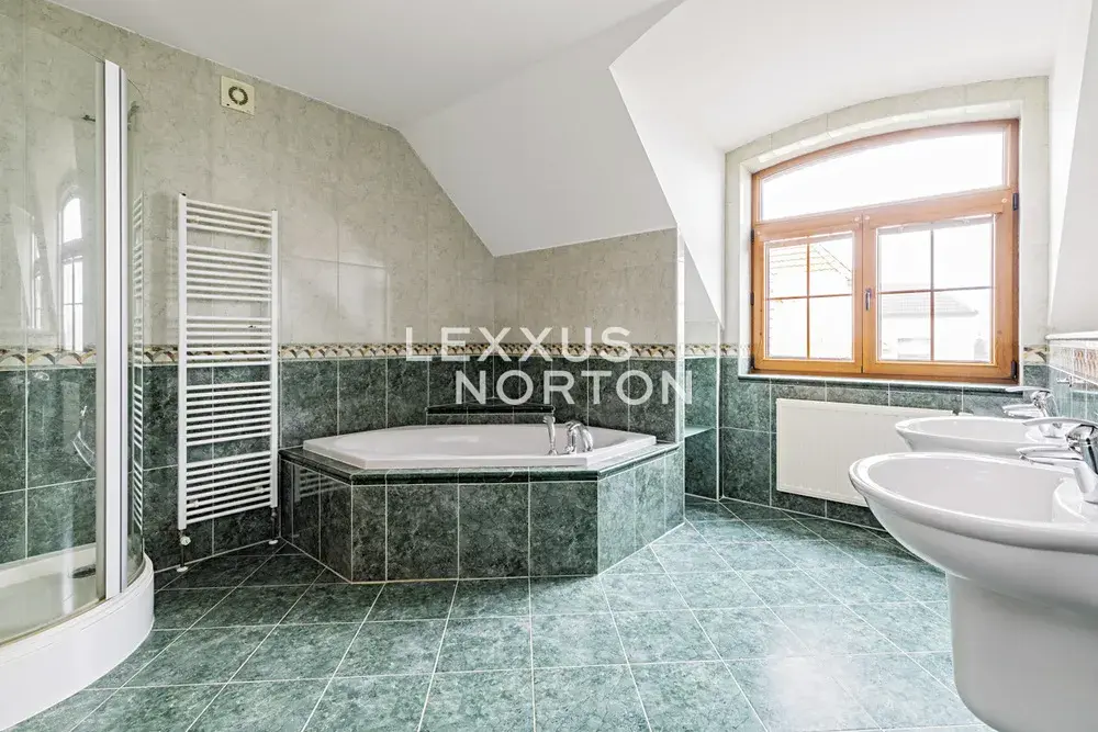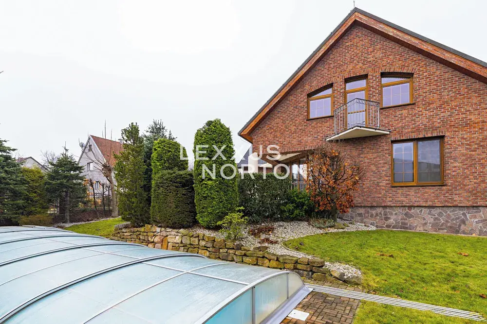 Vila 9+1 k pronájmu s vyhřívaným bazénem a saunou disponuje prostornou vstupní chodbou, obývacím pokojem s jídelní částí, samostatnou plně vybavenou kuchyní se vstupem na terasu a toaletou pro hosty. Ve 2. nadzemním podlaží se nachází dvě prostorné haly, šest ložnic, dvě plně vybavené koupelny, prádelna a dva balkony. K domu náleží garáž pro dvě vozidla a krásná udržovaná zahrada o ploše 670 m2.
