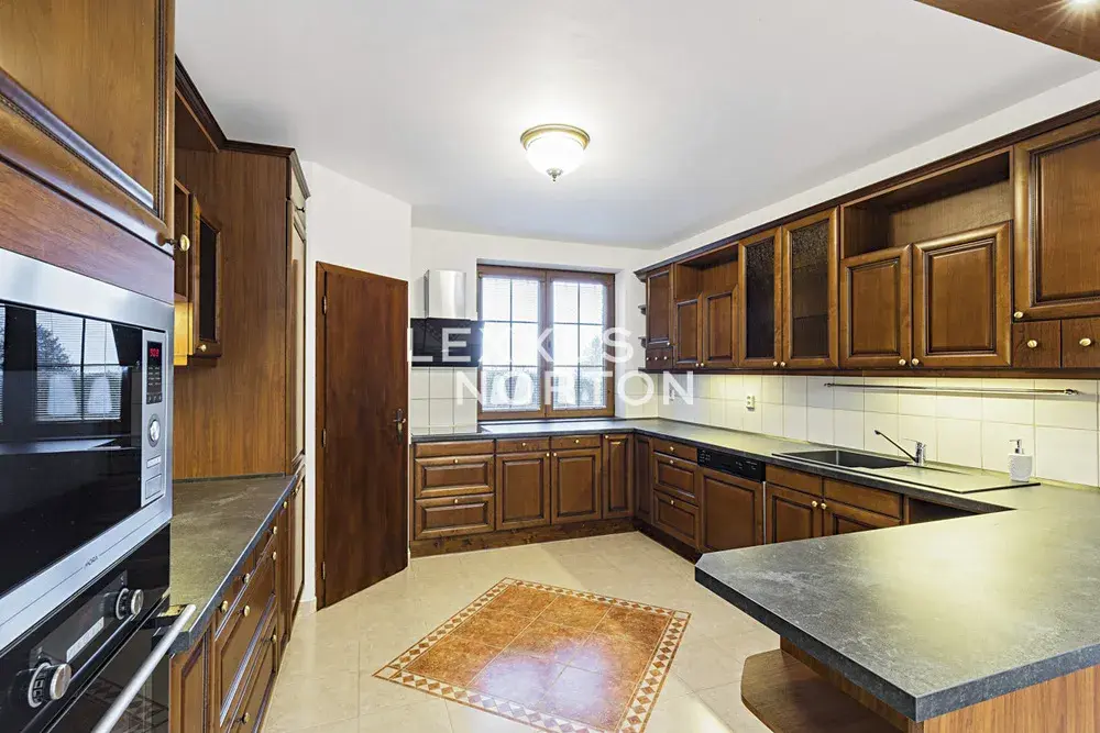Vila se nabízí nezařízená, přičemž její součástí je plně vybavený kuchyňský kout se spotřebiči: sporák, trouba, lednice, mrazák, myčka nádobí a mikrovlnná trouba. Byt dále disponuje vestavěnými skříněmi, alarmem, plynovým kotlem, domácím vrátným, pračkou, sušičkou a zahradním domkem. Podlahy tvoří kombinace plovoucí laminátové podlahy a dlažby.