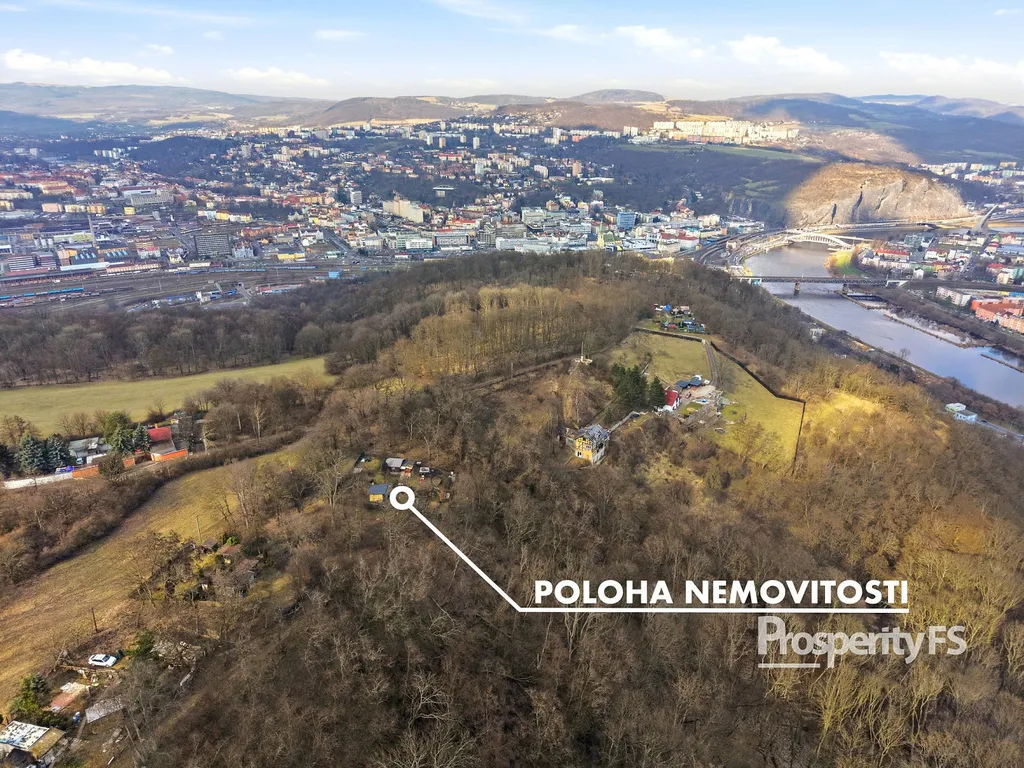 Chata se nachází na oploceném pozemku o velikosti 430 m² (v nájmu od města) a nabízí příjemné soukromí s minimem sousedů. Lokalita působí jako polosamota, přesto je centrum města v dobré dostupnosti. Velkým benefitem je pěkný výhled na Střekov a okolní krajinu.