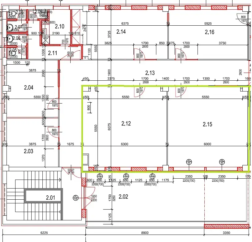 Prostory se nacházejí ve 2.NP podlaží budovy, jedná se o dvě samostatné kanceláře, k dispozici je kuchyňka a sociální zázemí.