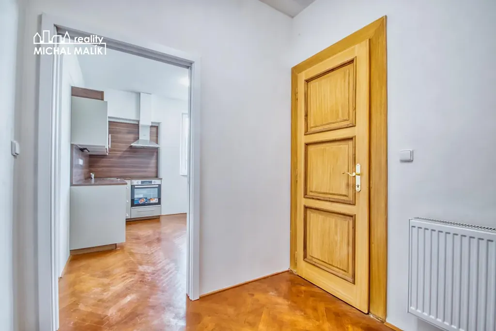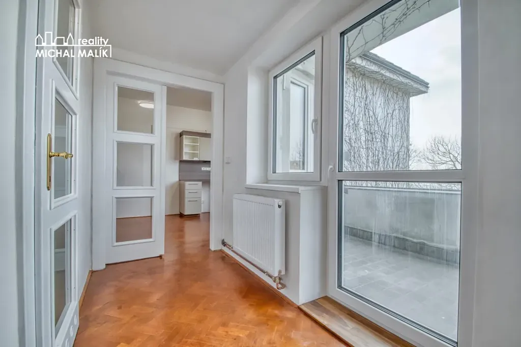 Dispozice: vstupní chodba s praktickým úložným prostorem (komorou), ze které je vstup do kuchyně s novou kuchyňskou linkou. Dále navazuje průchozí chodba, odkud je přístup do koupelny, na balkon a do prostorného obytného pokoje.