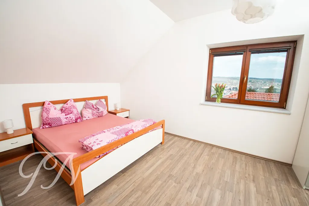• 3 prostorné ložnice, pracovna, 2 šatny a obývací pokoj s kk o výměře 38 m2