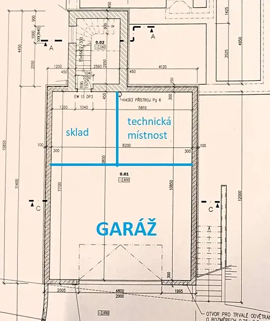 • garáž pro 3 vozidla, 2 technické místnosti, sklad, 2 terasy, balkón