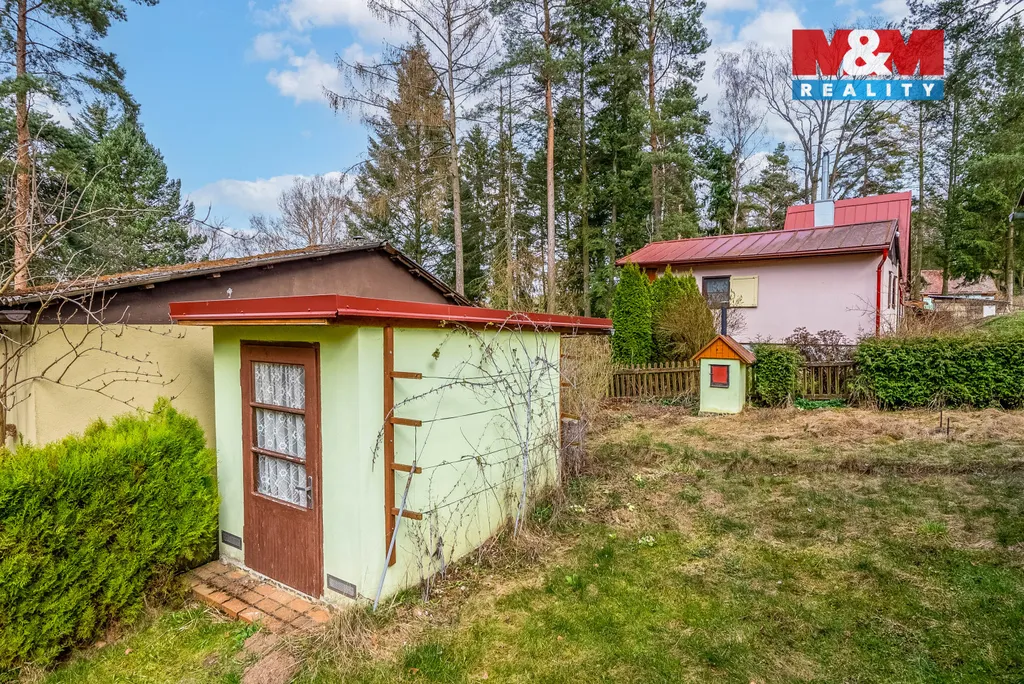 Pozemek o výměře 279 m² doplňuje kůlna na nářadí a udírna - praktické zázemí pro pohodové chvíle na chatě i večery s vůní dřeva z kamen.