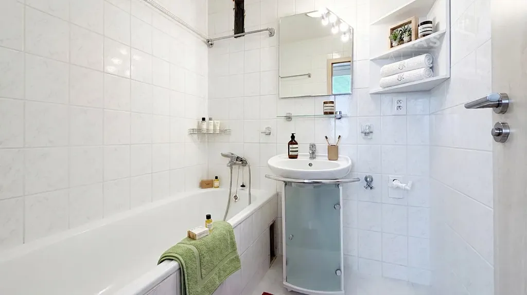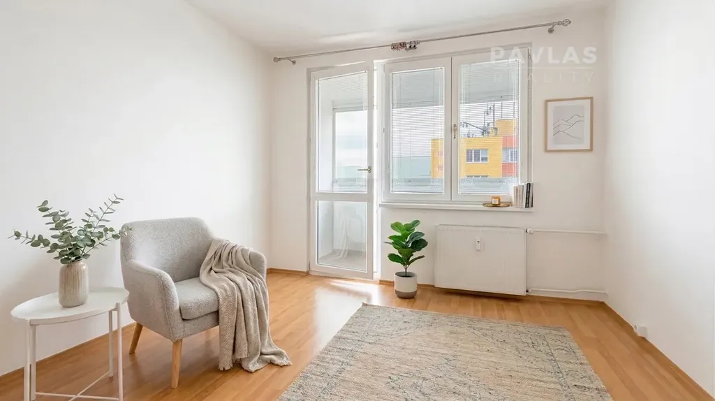 Vnitřní uspořádání bytu je řešeno velmi prakticky. Srdcem domova je světlý obývací pokoj, dvě samostatné neprůchozí ložnice, kuchyně s dostatkem prostoru i pro jídelní stůl, a koupelna s vanou. Výrazným benefitem interiéru je zabudovaná prostorná šatna, která zajišťuje dostatek úložných prostor a přispívá k čistému, vzdušnému dojmu z celého bytu.