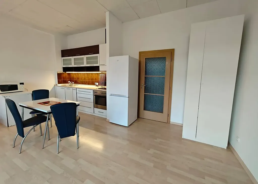 Kuchyňský kout je plně vybaven veškerými spotřebiči – k dispozici je lednice, trouba, varná deska, mikrovlnná trouba i myčka. V předsíni se nachází prostorná vestavěná skříň, která nabízí dostatek úložného prostoru. Koupelna je vybavena pračkou a dalšími úložnými prvky. Také součastí bytu je prostorná lodžie.