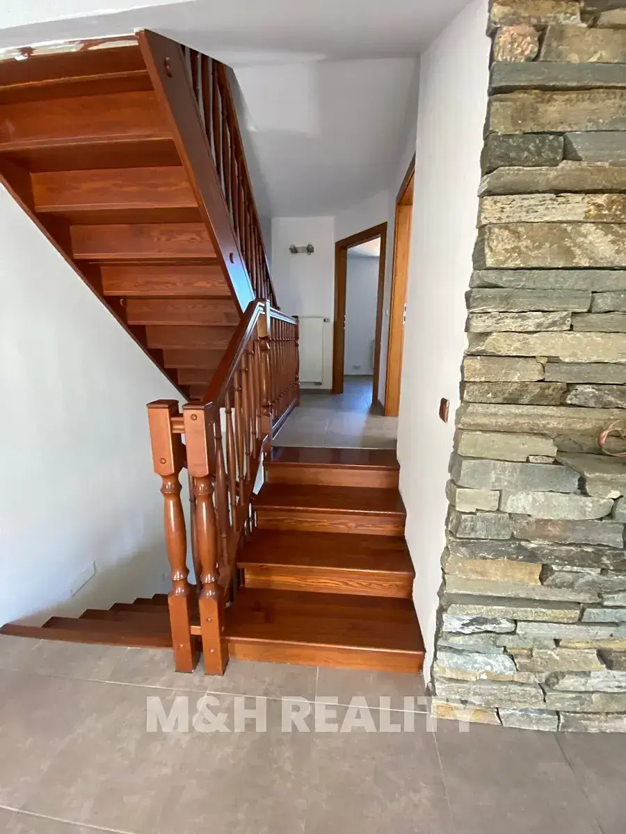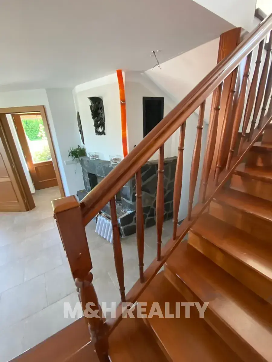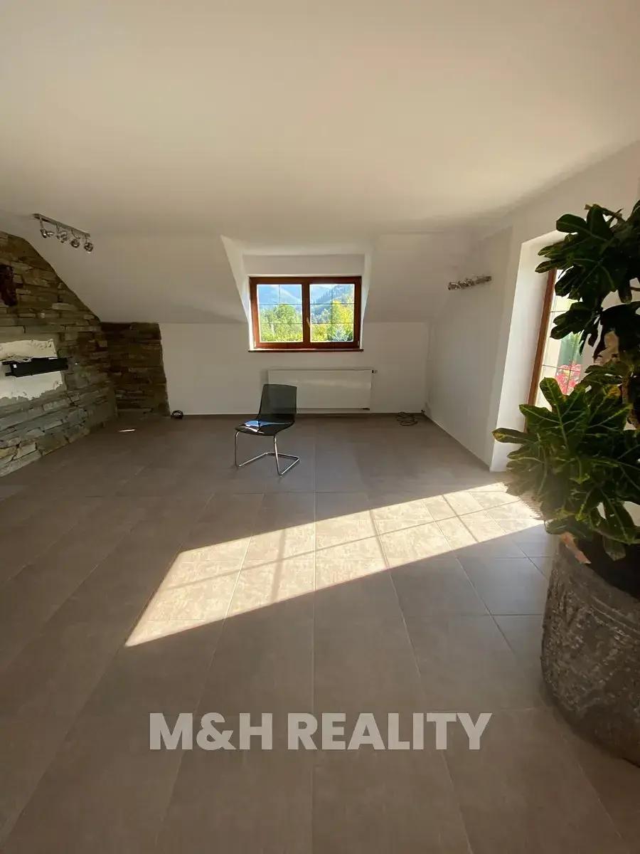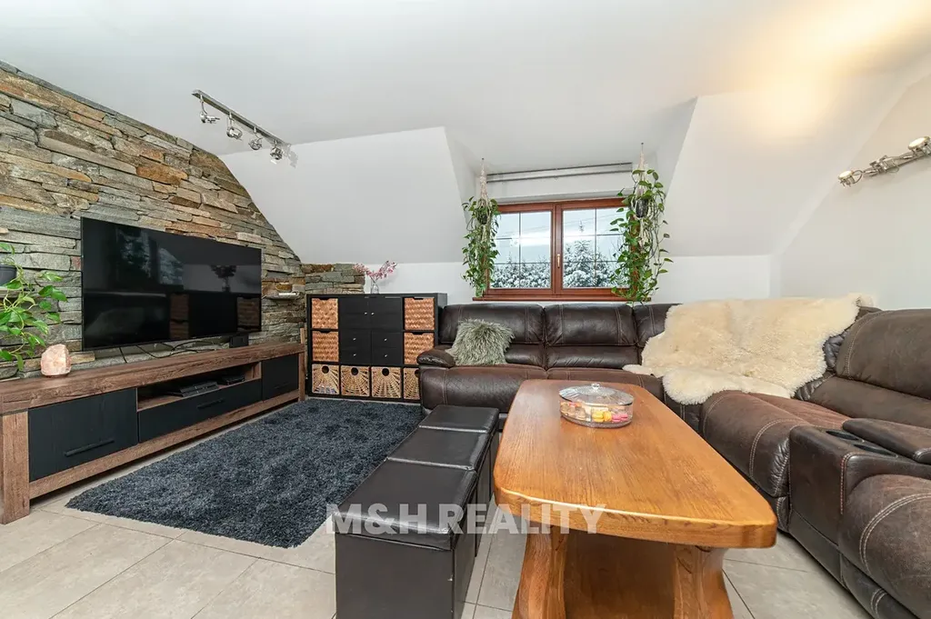 Dovolujeme si Vám nabídnout dům 6+kk s otevřenými výhledy na golfové hřiště Čeladná v Kunčicích pod Ondřejníkem, kde stačí přejít cestu a jste v Čeladné. Někdy jsou hranice na mapě jen čáry a toto místo má své kouzlo. Dům je situován v chráněné krajinné oblasti Beskydy, obklopen přírodou, výhledy a klidem což Vás určitě nadchne. Ve skutečnosti budete žít přesně tam kde chcete –na prestižní hraně obou světů. Lokalita domu je naprosto unikátní. Jaro a léto jsou zde bez nadsázky rájem-zeleň, ticho, horský vzduch a panorama, které Vás nikdy neomrzí. Podzim Vás okouzlí svou pestrobarevností a zima je tady jako z pohádky. Je to dům který má atmosféru. Zastavěná plocha a nádvoří 162m2, plocha pozemku 967m2, celková plocha pozemku 1.129m2. Podlahová plocha 218m2, užitná plocha 218m2.Dům s dispozicí 6+kk má dvě podlaží. Dům byl kolaudován v roce 2008 přičemž v posledních letech proběhla modernizace byl vyměněn plynový kotel, nový bojler, vlastní PB zásobník ( doplnění cca 1x za 14 měs.), jímka 27m3, vlastní studna, na hranici pozemku se nachází vodovodní obecní řád. Měsíční náklady elektřina 2.500,-Kč., plyn 3.000,-Kč. Energetická náročnost budovy třída B. Hlavní garáž umožňuje vjezd do druhé, vnitřní garáže, ideální pro druhý vůz, dílnu atd. Další úložné prostory jsou nad garáží v podkroví. Interiér domu Vás překvapí vstupní halou s krbem-místem kde odložíte nejen kabát, ale i starosti dne. Srdcem domu je velkorysý obývací pokoj propojený s kuchyní a přímým vstupem na terasu, odtud sledujete svahy přírodní rezervace Kněhyně a horské hřebeny v dálce. Dispozice domu nabízí tři ložnice v patře, útulný pokoj v podkroví, multifunkční místnost v přízemí (pro wellness, tichou pracovnu atd.)Bezproblémové bydlení, soukromí bez izolace, soukromí na pozemku pro relax bez náročné údržby, klid a respekt k soukromí je samozřejmostí. Pokud Vás tato nabídka s nejluxusnějšími výhledy zaujala, neváhejte nás kontaktovat a domluvte si prohlídku.