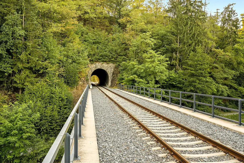 • na vlak pěšky