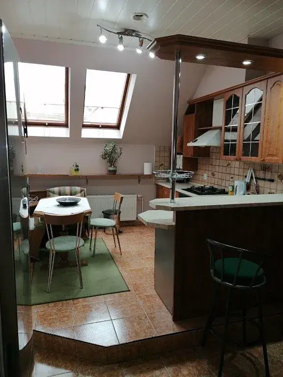 Ve II.NP. se nachází bytová jednotka s vybavenou kuchyní, obývací pokoj s krbem, koupelna s rohovou vanou s WC, a pěkná zastřešená terasa.