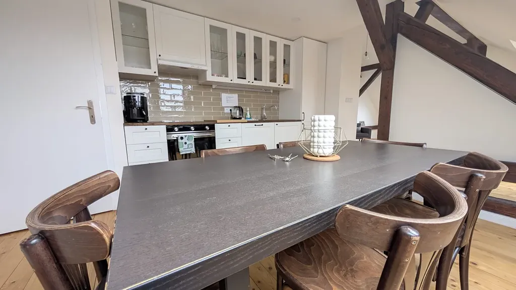 Byt prošel kompletní rekonstrukcí v roce 2023 a nabízí moderní, funkční a příjemné bydlení. Vytápění i ohřev teplé vody jsou řešeny elektrickým kotlem. Dispozičně je řešen jako dvoupodlažní – spodní část tvoří prostorný otevřený obytný prostor s kuchyní a jídelnou, koupelna s vanou a samostatná ložnice. V horním patře se nacházejí dvě ložnice a koupelna se sprchovým koutem.