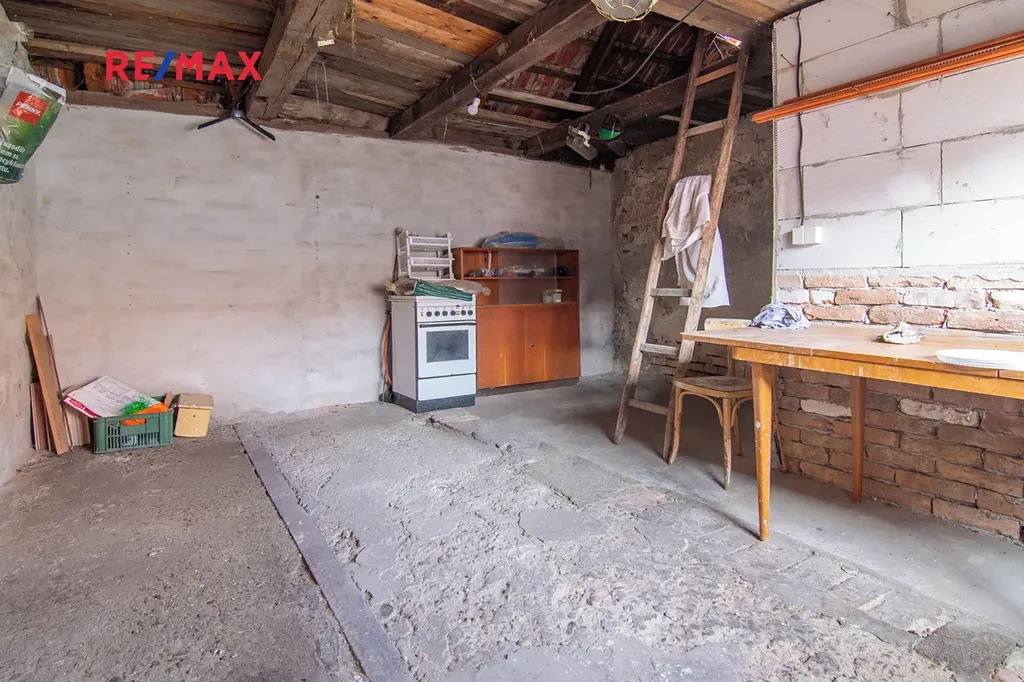K domu patří ještě jedna místnost, kterou lze využít jako dílnu, letní kuchyň nebo společenskou místnost. Tato část je také podsklepená, takže místo pro svůj archiv už hledat nemusíte.