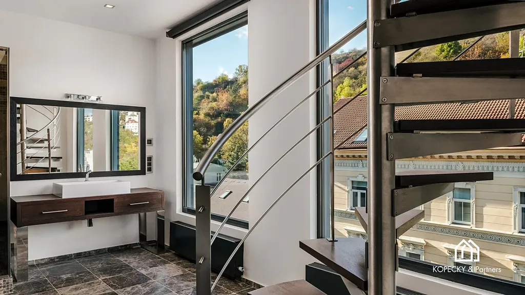 Hlavní obytný prostor vás uchvátí svou vzdušností a rozměry – dvojitá výška stropu vytváří dojem velkoleposti, zatímco velká okna poskytují dostatek přirozeného světla a dechberoucí výhledy na historické panorama Prahy. Kuchyň je vybavena špičkovými spotřebiči značky Miele a splňuje nejvyšší nároky na funkčnost a design. Pro maximální komfort je loft vybaven klimatizací a moderní rekuperační jednotkou, která se stará o neustálou výměnu a čerstvost vzduchu, což zaručuje optimální vnitřní prostředí po celý rok.