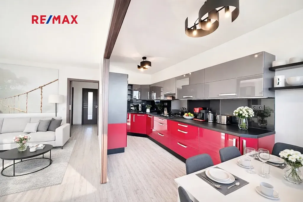 Bytová jednotka prošla v průběhu posledních let podstatnou rekonstrukcí. Zděné jádro s vanou, moderní kuchyňská linka na míru s vestavnými spotřebiči, rekonstrukce podlah s výměnou krytin (vinyl, dlažba, plovoucí podlaha), obložkové zárubně (široké posuvné dveře mezi obývacím pokojem a chodbou), úložné prostory v podobě vestavných skříní a samostatné šatny u vchodových dveří. Plastová okna orientována na východ a na západ.