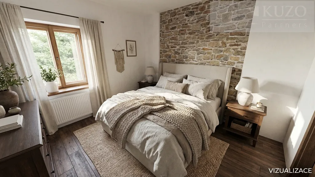 Obytné podkroví s terasou: V patře se nacházejí dvě obytné místnosti s klasickými okny. Z jedné z nich vyjdete přímo na soukromou terasu, která je jako stvořená pro nerušenou ranní kávu.