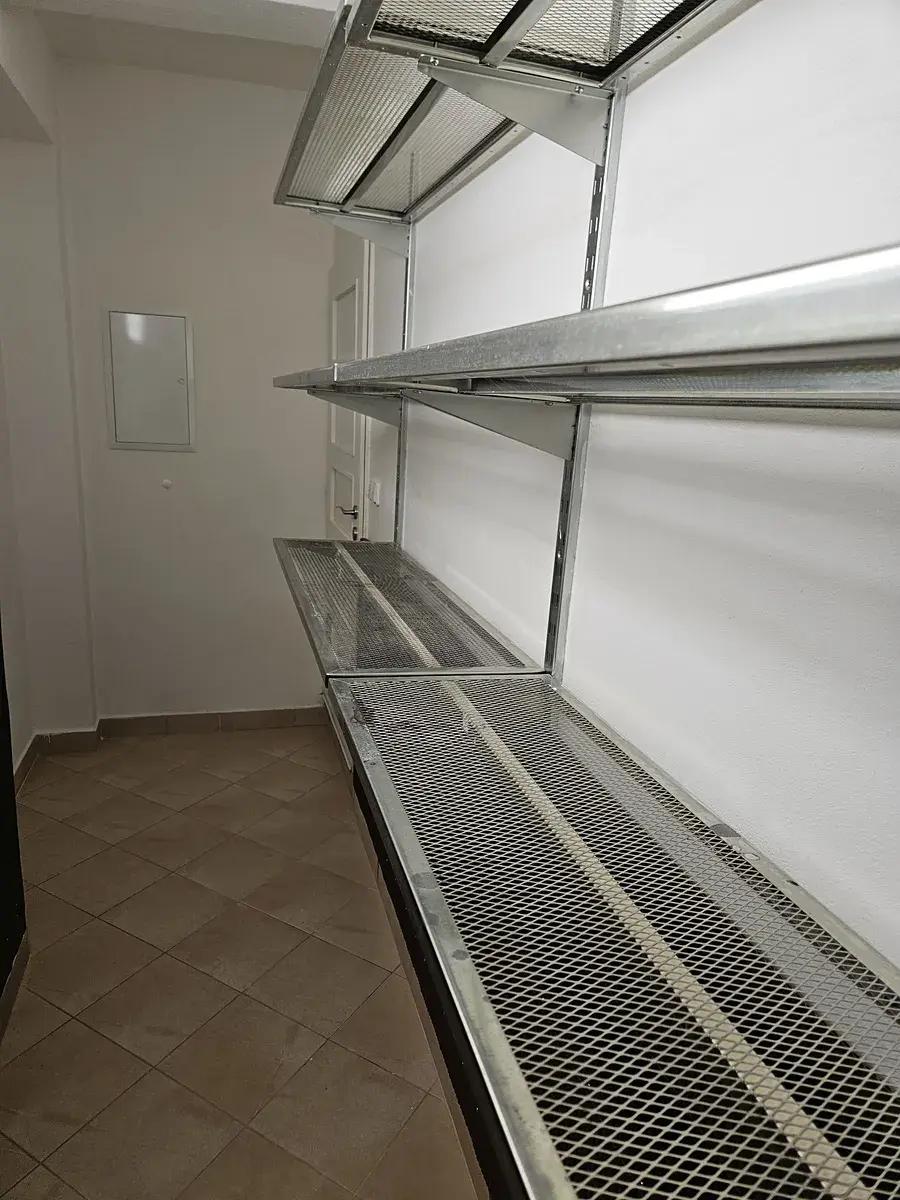 Dispozice bytu sestává z předsíně o výměře 3,4 m², pokoje s kuchyňským koutem o výměře 16 m², koupelny se sprchovým koutem a WC o výměře 3,1 m, prádelnou 9,1m² a sklepem 6,16 m².