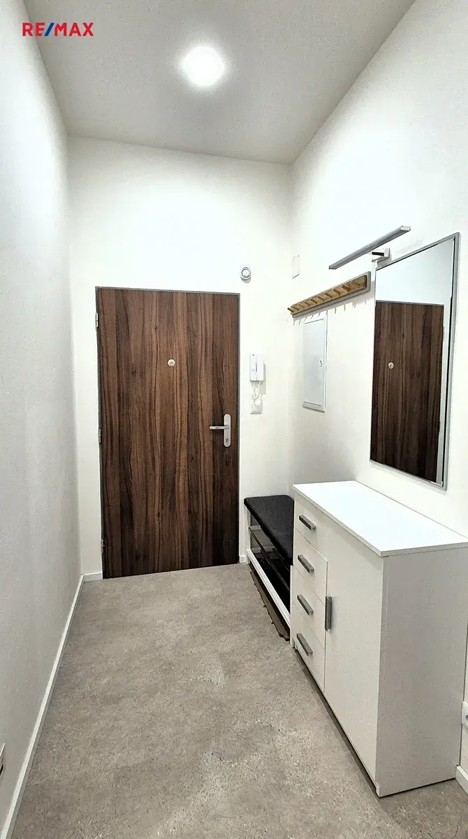 Byt je zařízen základním nábytkem, takže start po nastěhování je jednodušší a rychlejší. K dispozici je také příprava na pračku v předsíni, což šetří místo v koupelně a zvyšuje komfort každodenního fungování. Koupelna je vybavena sprchovým koutem a WC, vše v čistém a moderním provedení.