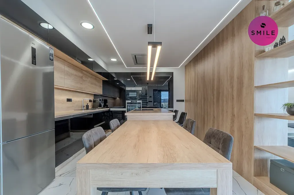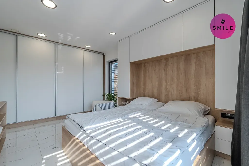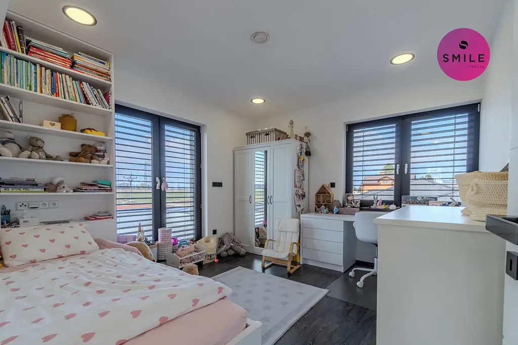 V interiéru nechybí prvky, které podtrhují celkový nadstandard domu – centrální vysavač Electrolux, okna s trojskly, sítě proti hmyzu, venkovní žaluzie či designové vypínače. Dům nabízí také praktické technické zázemí, dostatek úložných prostor a celkově velmi komfortní provoz pro každodenní rodinné fungování.