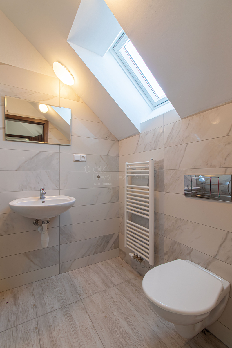 Dům je postaven z kvalitních cihel Heluz Family 38 2in1, které vynikají výbornými tepelně-izolačními vlastnostmi a přispívají k minimálním tepelným ztrátám. Vytápění řešeno pomocí tepelného čerpadla, které zajišťuje úsporný a ekologický provoz po celý rok. Díky této kombinaci dosahuje nemovitost energetické náročnosti třídy B – velmi úsporná, což se zásadně promítá do nízkých provozních nákladů a dlouhodobé ekonomické efektivity provozu se stabilním výnosovým potenciálem.