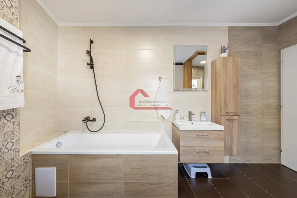 *novou koupelnu s WC, bojlerem a místem pro pračku a sušičku