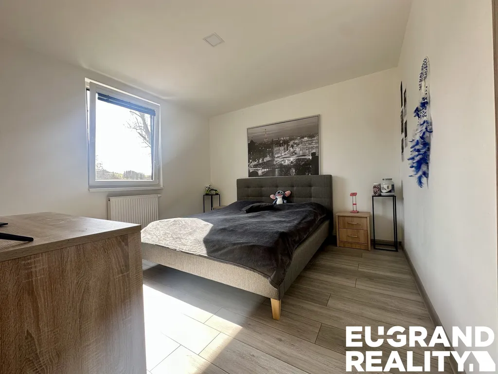 Patro: chodba s útulným posezením, prostorná ložnice a dva pokoje