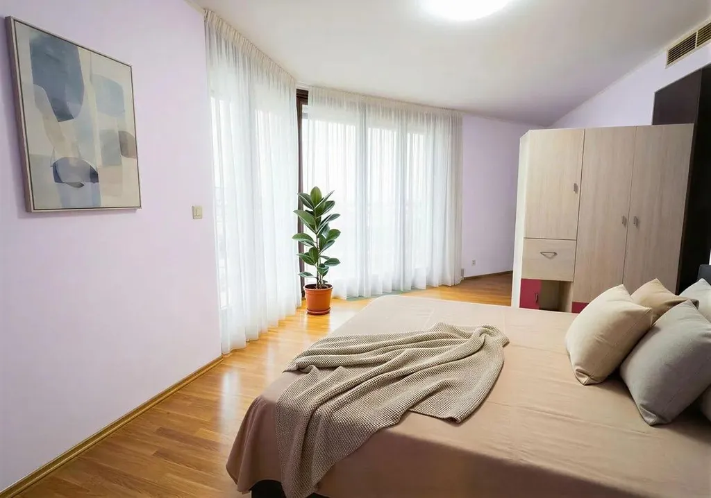 Byt nabízí tři samostatné ložnice, z nichž dvě mají přímý vstup na terasu a jsou vybaveny dvoulůžkovou postelí a vestavěnými skříněmi. Třetí ložnice je ideální jako dětský pokoj nebo pracovna.