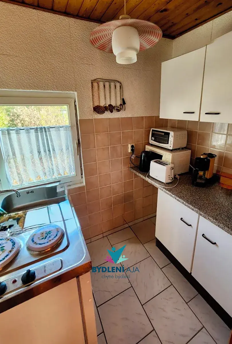Na pozemku stojí menší zahradní chatka se zastavěnou plochou 15 m², která se skládá z centrální místnosti s kuchyňským koutem. Chatka je podsklepená.