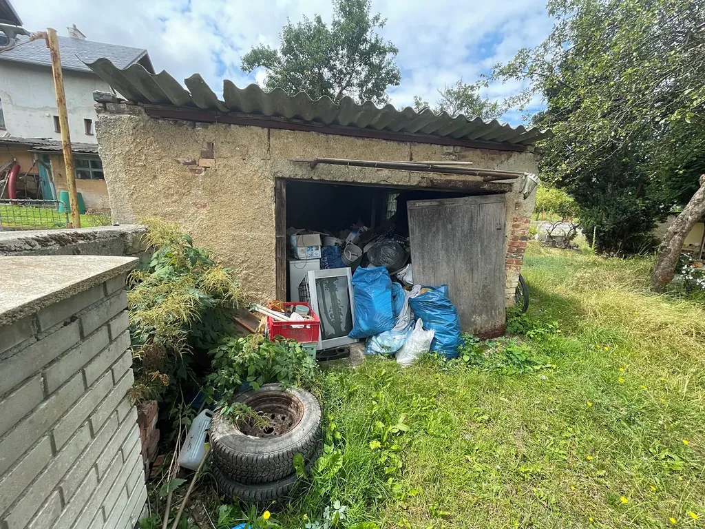 Předmětem dražby je garáž – špatný stav na pozemku jiného vlastníka v k.ú. Luby I, okres Cheb.