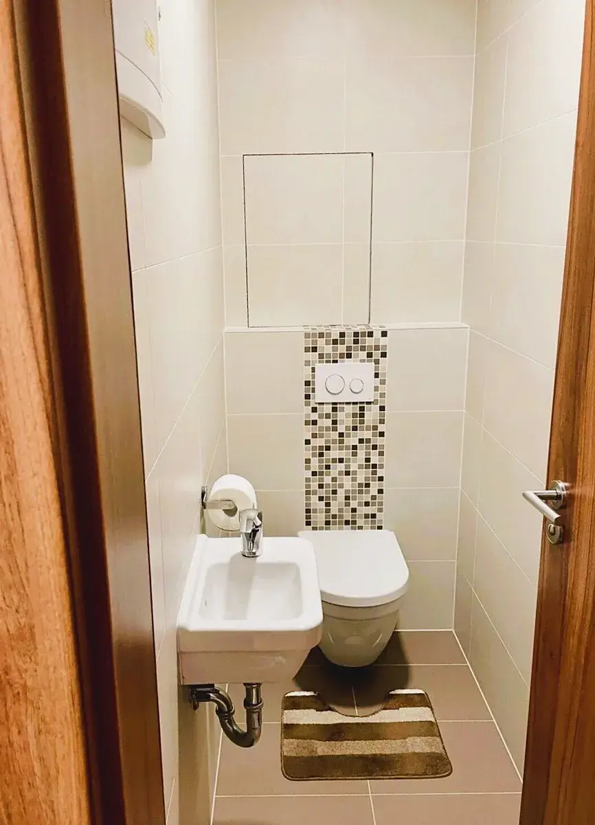 Byt je vybaven kuchyňskou linkou s vestavěnými spotřebiči včetně lednice.