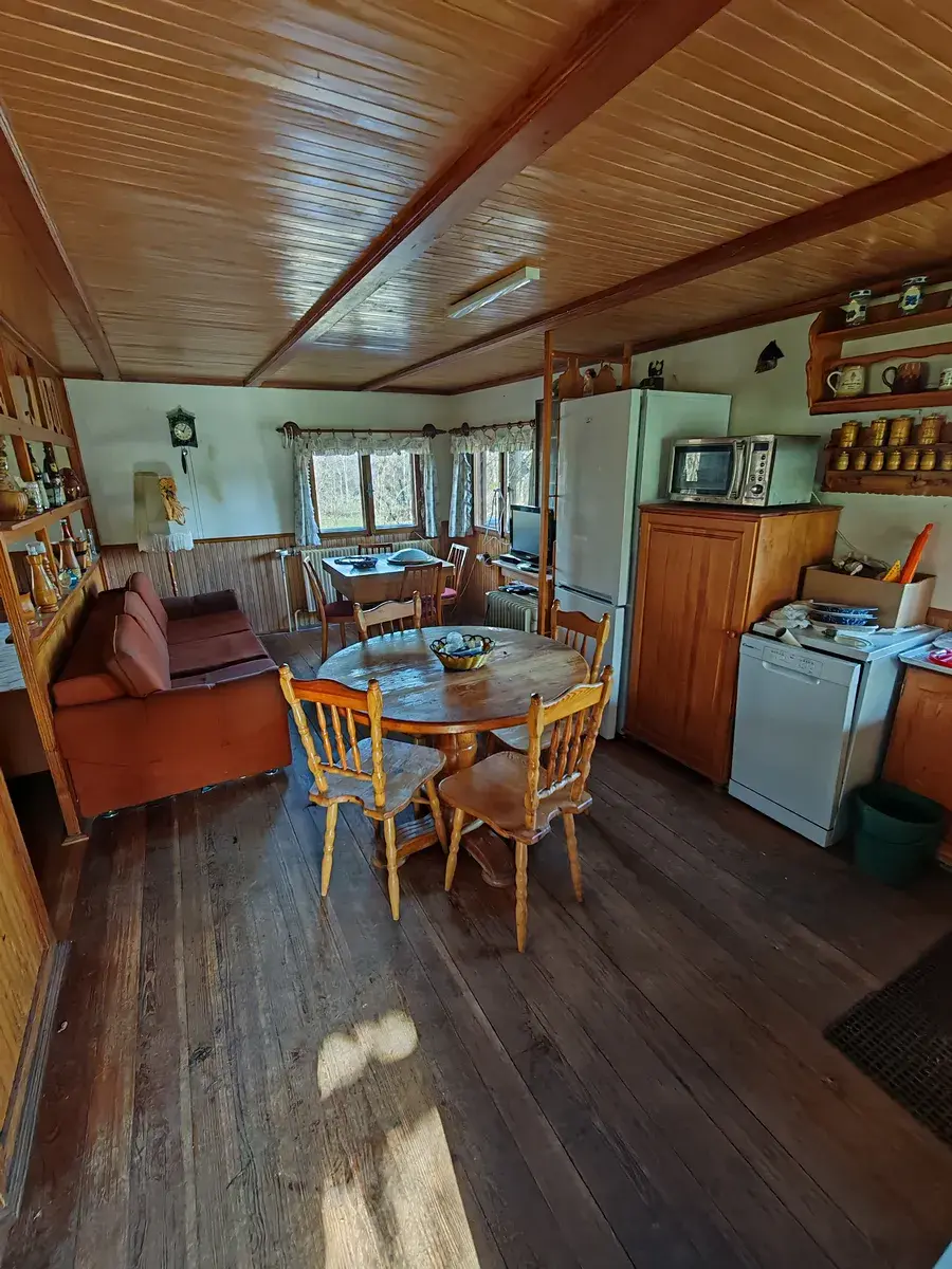 Šumava- exklusivně nabízíme stylovou chatu s velkou ovocnou zahradou 4400 m2,umístění na samotě 1 km od malé obce pod Svatou Maří,v mírném kopci s krásným výhledem na Svatomářský vrch,lesy,kopce Šumavy. Vzhledem k tomu,že pozemek navazuje na místní asfaltovou komunikaci,je přístup celoročně.Pozemek je oplocen,velké množství ovocných stromů tvoří krásnou zahradu.Chata je v suterénu zděná,má velkou garáž,sklad,kotelnu,koupelnu a WC,krásný sklep na ovoce,víno,potraviny.Také jsou z chodby dřevěné schody do přízemní a do dřevěné části- stylová montovaná chata.Nejen ze suterénu,ale i přes terasu je vstup do chaty,kde je v levé části veranda či jídelna s výhledem a posezením,obývací pokoj a kuchyní ,ložnice,na kuchyň navazuje velká terasa,také s výhledem pro relax.Vše stylové ve dřevě.Výhodou je celoroční využití vzhledem k vlastnímu vrtu,septiku a ústřednímu vytápění,které je na elektrokotel i na tuhá paliva,možnost zřízení krbovek.Vedle chaty je velká zděná udírna,sklad na nářadí a sklad dřeva.Možnost rozšíření dle potřeby.V místě klid,slunce,výhled a příroda.Vzhledem k umístění se nepředpokládá blízká zástavba.Blízko na centrální Šumavu,15 km je Zadov,pár km do Vimperka či Čkyně.Okolo chaty je vlastní pozemek-ovocná a udržovaná zahrada .Blízko do obce s vybaveností a obchodem, ideální pro milovníky klidu,vody a přírody.Celková plocha je 4400 m2.PENB G.