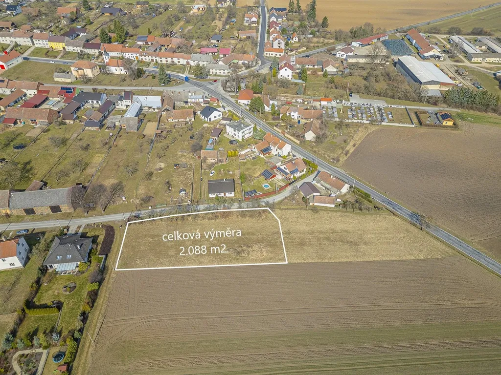 Vyjímečné stavební místo na okraji obce Vícov, které se skládá ze čtyř na sebe navazujících pozemků o celkové výměře více, jak dva tisíce metrů čtverečních.