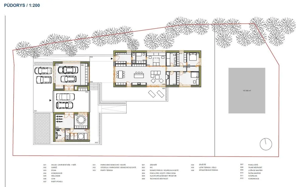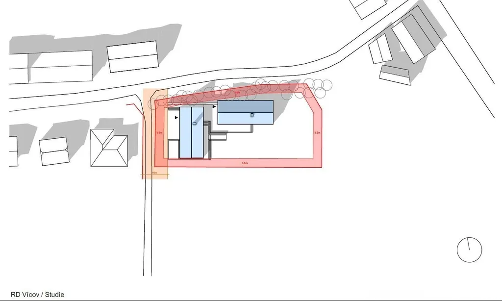 K pozemku je zpracována vizualizace na stavbu rodinného domu se zázemím.