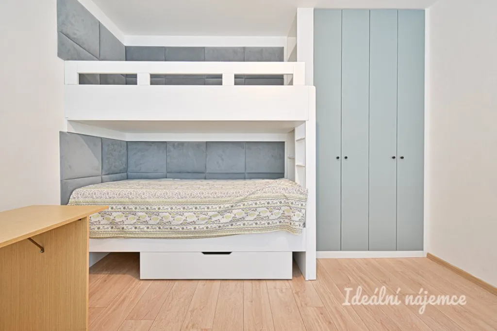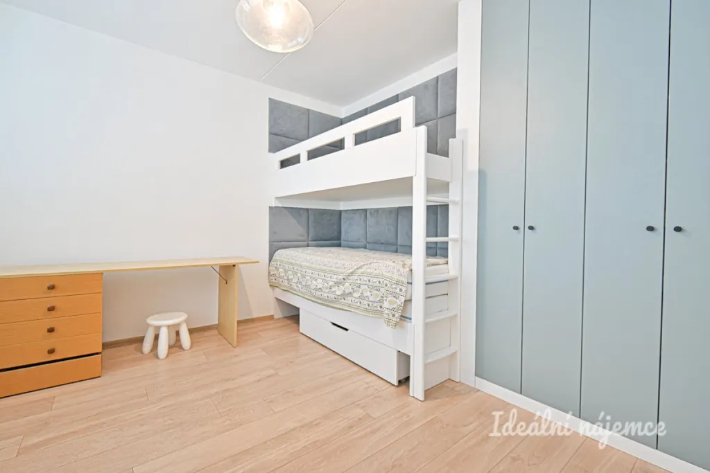 Byt se nabízí částečně vybavený dle fotografií. Kuchyně disponuje lednicí, elektrickou troubou, varnou deskou a digestoří. Obývací část je zařízena kvalitní pohovkou italské výroby, konferenčním stolem, televizí a jídelním setem. Součástí ložnice je postel a skříň. V dětském pokoji najdeme postele a šatní skříň. V posledním pokoji je vestavěná skříň.