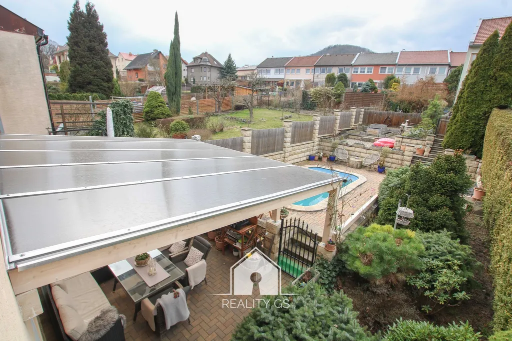 K prodeji ve velmi žádané lokalitě Děčína vám nabízíme dům se zahradou, garáží, parkovacím stáním pro dvě vozidla, bazénem a zahradou. Nabízený dům je dispozičně řešený jako 4+kk se dvěmi plnohodnotnými koupelnami, velkým obývacím pokojem přímo propojeným s kuchyňským koutem, ze kterého je též okamžitý přístup na zastřešenou terasu. Podlahová plocha domu je cca 140 m2 s ideální velikostí pro čtyř až pětičlennou rodinu. Dům je dvoupodlažní, v prvním podlaží se nachází vstupní chodba, předsíň se vstupem do 1. koupelny a do garáže, dále přejdete do obývací části, ze které po schodech dojdete do patra, ve kterém se nachází 2. koupelna, komora, dětský pokoj, pracovna a ložnice. V pokojích jsou vestavěné skříně na míru. Vytápění domu a ohřev vody jsou řešené plynovým kotlem Viessmann, dům je napojený na kanalizaci, jeho stav je velmi dobrý a nevyžaduje žádné další investice. Výhodou je, že zde nebudete muset trávit čas sekáním trávy, naopak tento ušetřený čas můžete využít k relaxaci u bazénu, grilování s přáteli nebo pěstováním zeleniny na několika vyvýšených záhonem. V okolí domu je veškerá obč. vybavenost, do OC Pivovar je to cca 4 min. chůzí. Pro více informací nebo domluvení prohlídky mne prosím kontaktujte. Financování je možné zajistit přes naše hypoteční centrum.