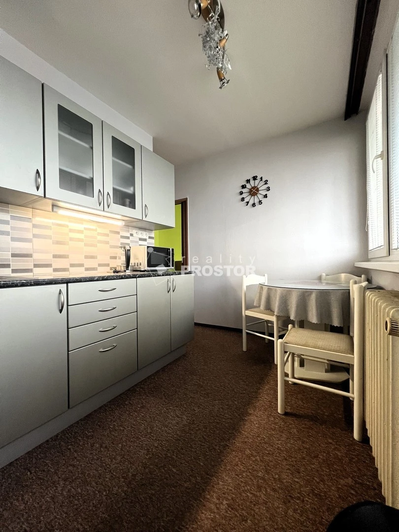 Byt se skládá ze zařízené kuchyně, vč. vestavěných spotřebičů, mikrovlnné trouby a jídelního koutu, dále zařízeného obývacího pokoje, (sedací souprava, obývací stěna a drobný nábytek. Dále ložnice se skříňkou a postelí a koupelna se sprchovým koutem, WC a funkční pračkou. V bytě je prostorná komora s velmi velkorysým úložným prostorem a řada dalšího drobného nábytku, viz foto, k dispozici také sklepní kóje.