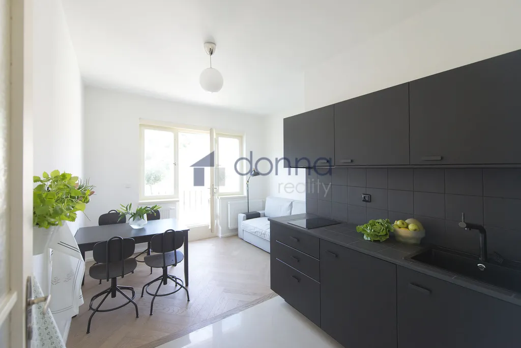 Nabízíme k pronájmu částečně zařízený, světlý byt 2+kk, o ploše 50m2 s terasou 14m2, v 6. podlaží činžovního domu s novým výtahem, ulice Hartigova, Praha 3 - Žižkov, na Tachovském náměstí.