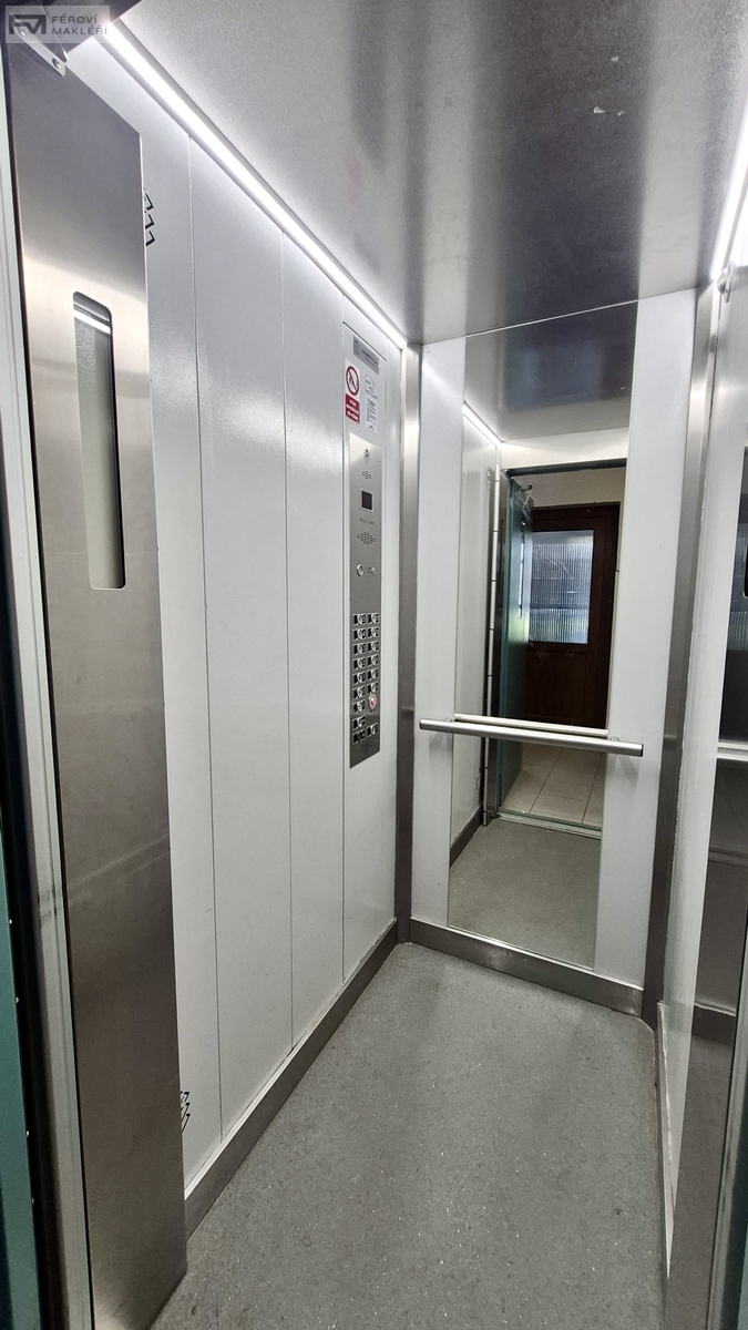 Byt je o celkové ploše 45m² a nachází se v domě s dvěma výtahy, výbornou dostupností a veškerou občanskou vybaveností v okolí – v docházkové vzdálenosti nákupní centrum Kaufland, Albert, Lidl, lékaři, veterina, školka, škola, fitcentrum, MHD u domu.