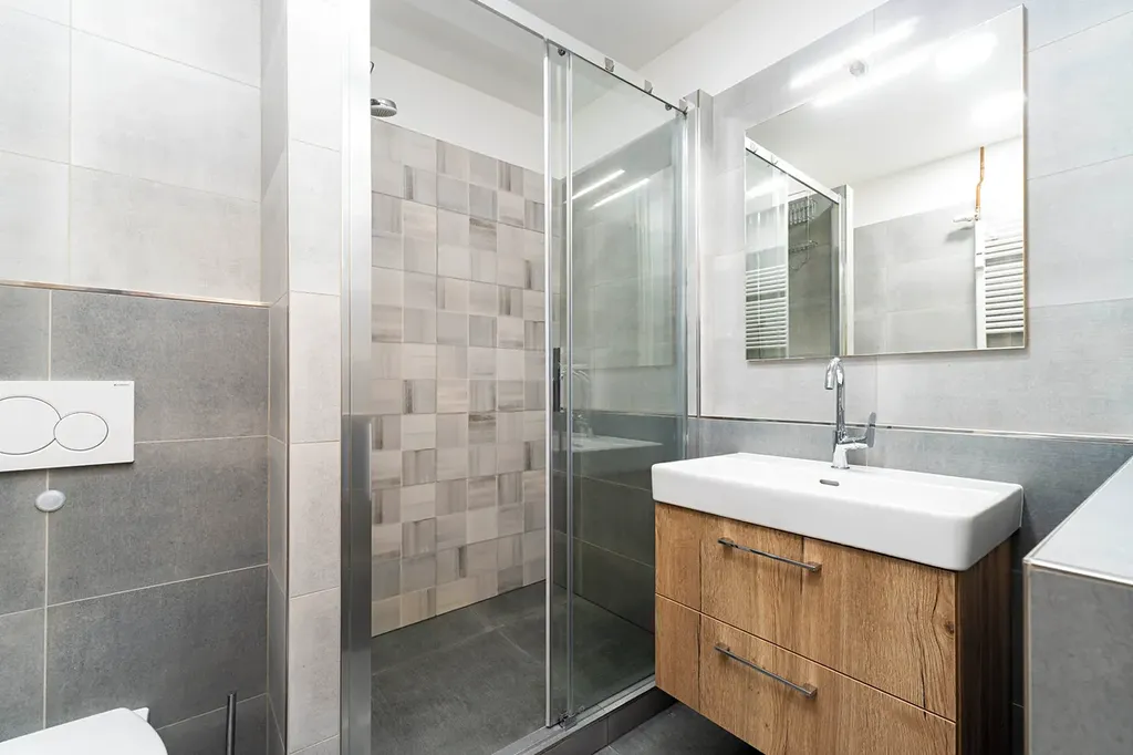 Nadstandardní rekonstrukce, která zahrnovala nové rozvody elektřiny, sádrové omítky a vinylové podlahy, sanitární obklady, nová topná tělesa v celém bytě a interiérové dveře, což zajistí komfortní a moderní bydlení.