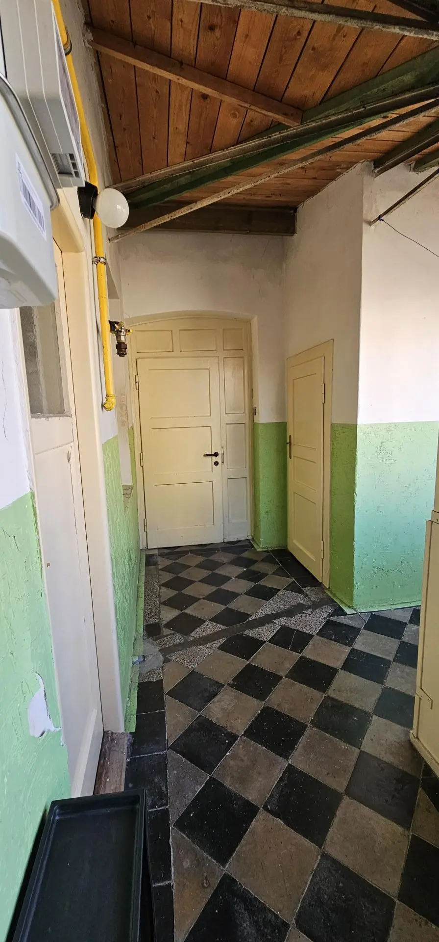 Samostatné WC POUZE PRO TUTO JEDNOTKU MIMO BYT je přístupné z chladné pavlače vedle bytu, která se v zimě nevytápí.