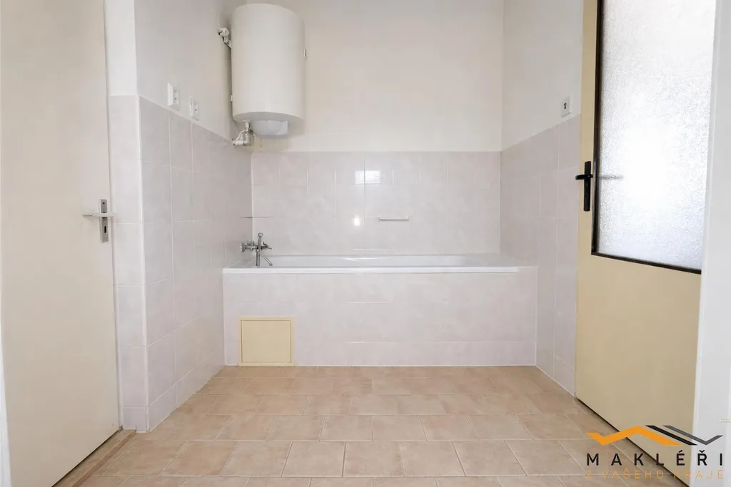 Kuchyňské vybavení tvoří částečná kuchyňská linka bez vestavěných spotřebičů. V koupelně se nachází klasická vana a umyvadlo, u WC je i sprchový kout. Podlahy: betonová podlaha, lino, teracová dlažba.