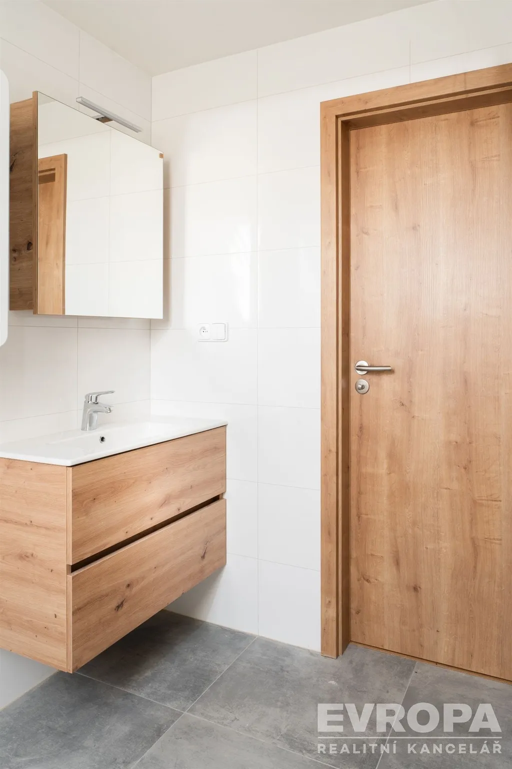 Praktické zázemí: V ceně je velkorysý sklep s elektřinou, který hravě pojme kola, lyže nebo poslouží jako kutilská dílna