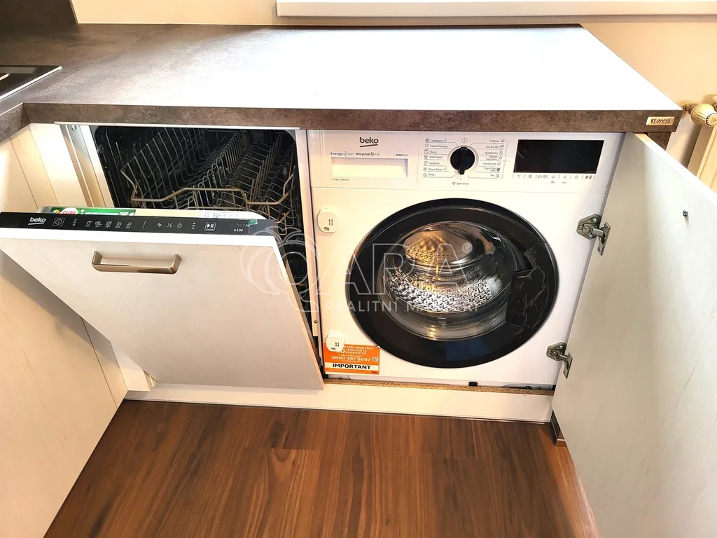 Byt je rozdělen na obývací pokoj s moderní kuchyňskou linkou, ložnici, koupelnu a velkou předsíň. Plně vybaven nábytkem a spotřebiči, včetně dvoulůžkové postele s matracemi (bude dodána). Je vhodný pro jednoho až dva nájemníky, kteří hledají pohodlné bydlení s dobrou dostupností do Prahy.