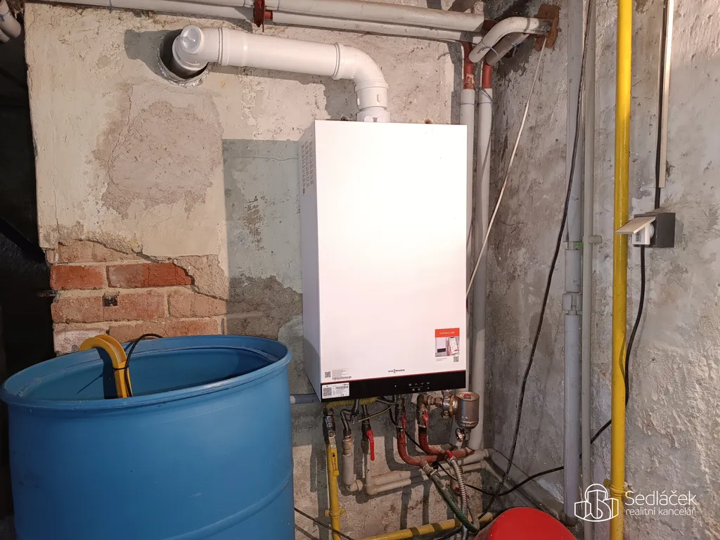 Dům je napojen na veškeré inženýrské sítě (veřejný vodovod, kanalizace, elektro 230/400 V a plyn). Vytápění je zajištěno ústředním topením s moderním kondenzačním plynovým kotlem. V obývacím pokoji jsou navíc krbová kamna jako doplňkový zdroj tepla.