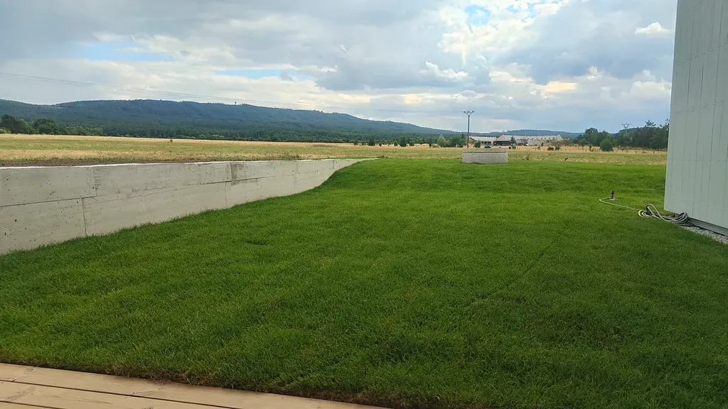 Součástí prodeje je pozemek, platné stavební povolení, kompletní projektová dokumentace, základová deska a kompletní inženýrské sítě. Dům je připraven k okamžité návazné výstavbě bez další administrativy.
