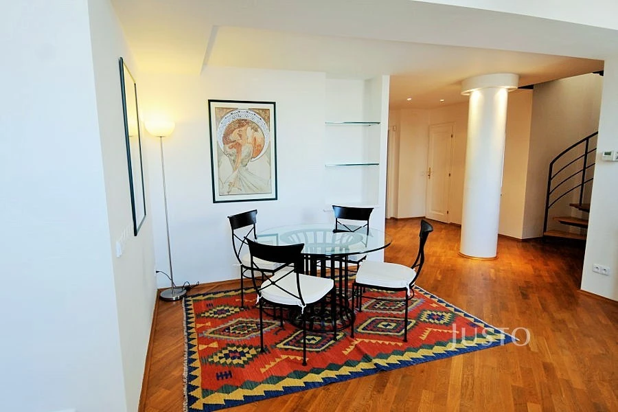 V zastoupení majitele nabízíme k pronájmu plně vybavený dvoupodlažní byt 3+1 v posledním a předposledním patře s výtahem o výměře 108 m² v secesním domě v Praze 2 – Nové Město.